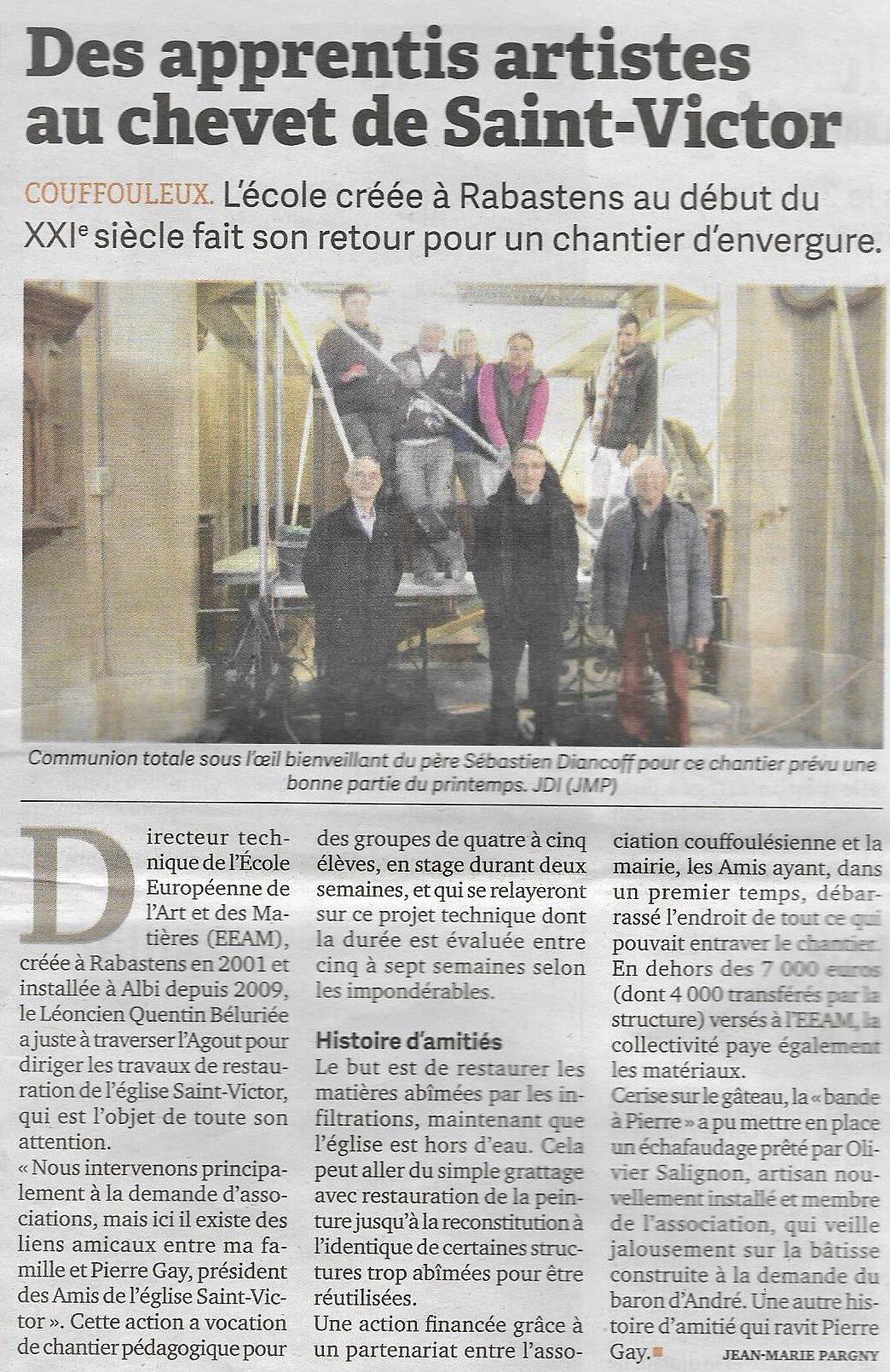 L'église de Saint Victor ouvre ses portes pour les visiteurs qui veulent voir les travaux de restauration réalisés par L'Ecole Européenne d' Art et Matière d' Albi.